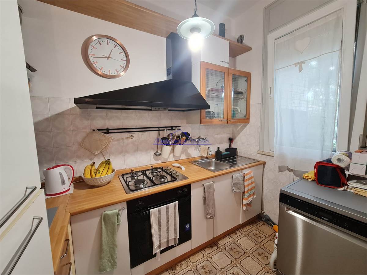 Caratteristiche principali: soggiorno con cucina a vista, tre camere da letto (una matrimoniale, una doppia ed una singola ampia),un bagno con doccia e due balconi. L'immobile è immerso nel verde e vicino al mare. Arredato.